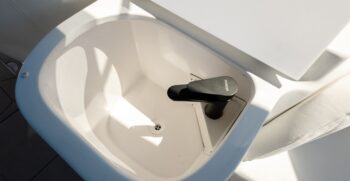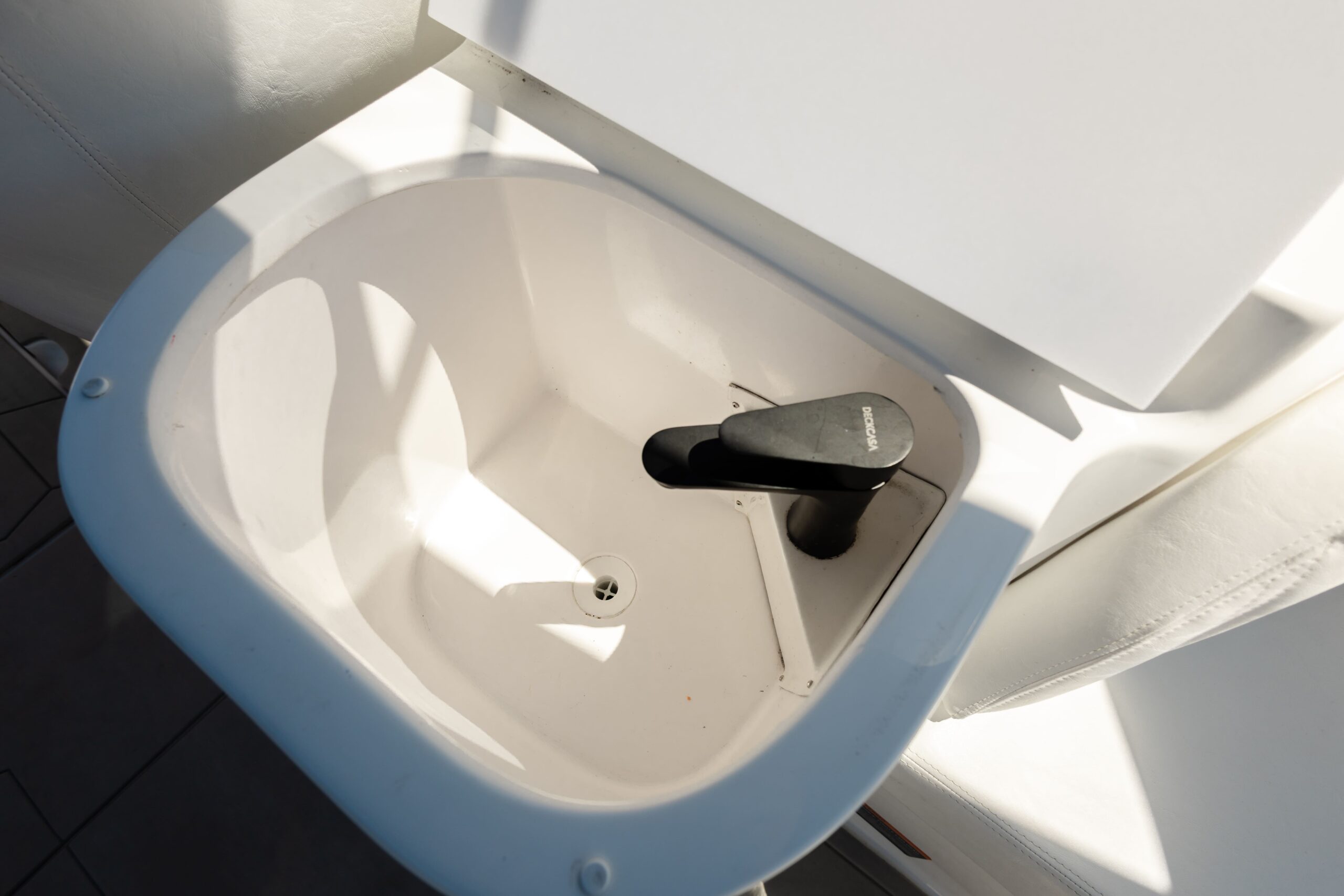 - Pia em fibra de vidro no convés