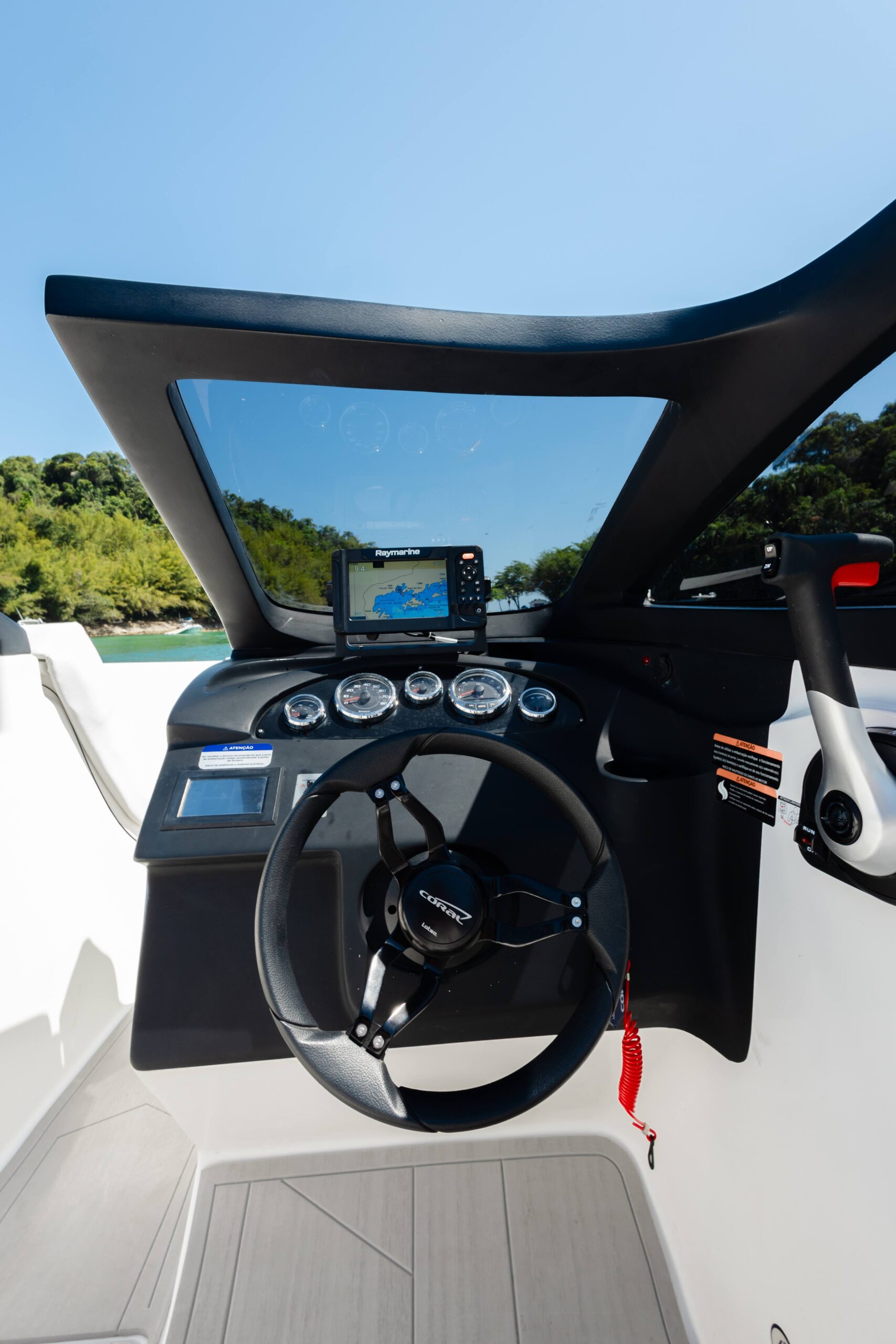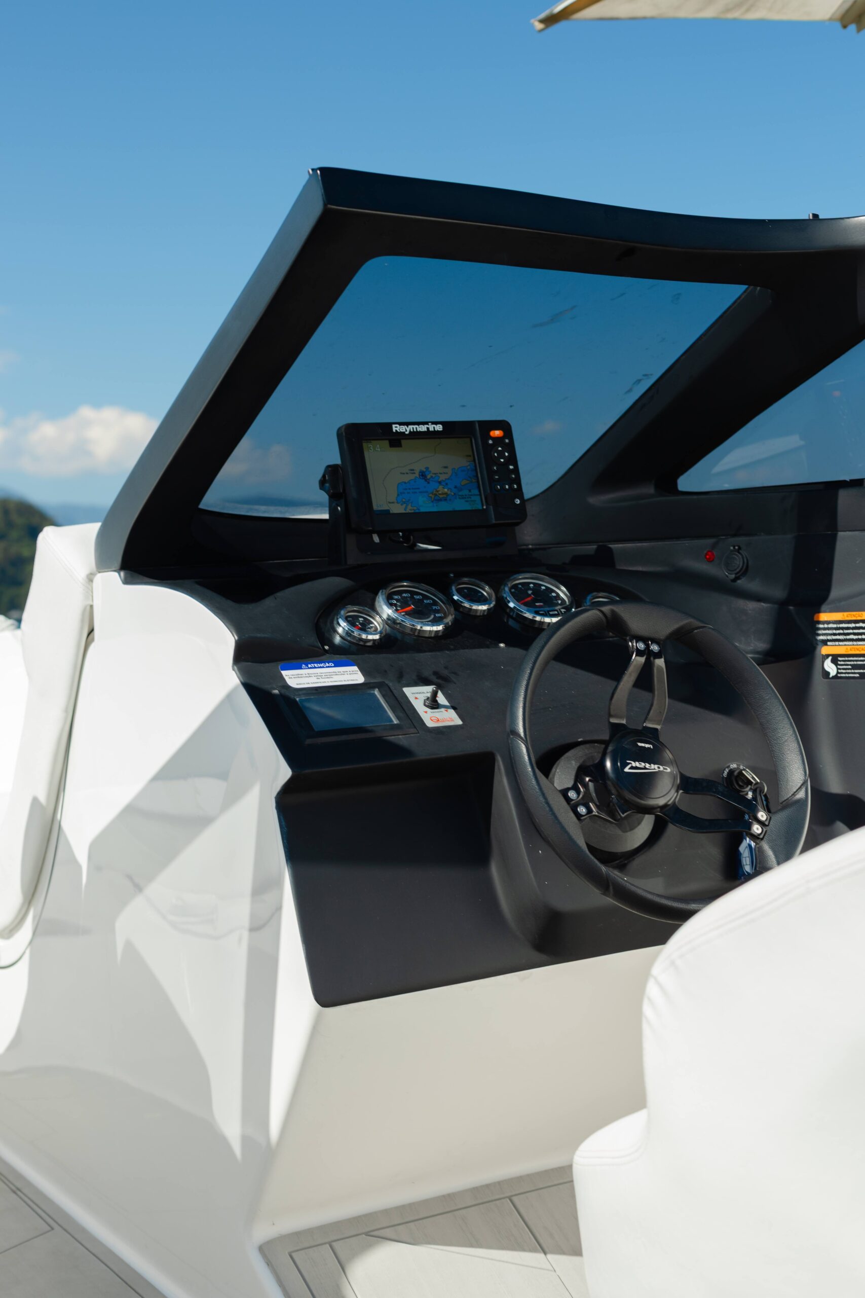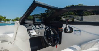 - Parabrisa com vidro e targa em fibra de vidro preta