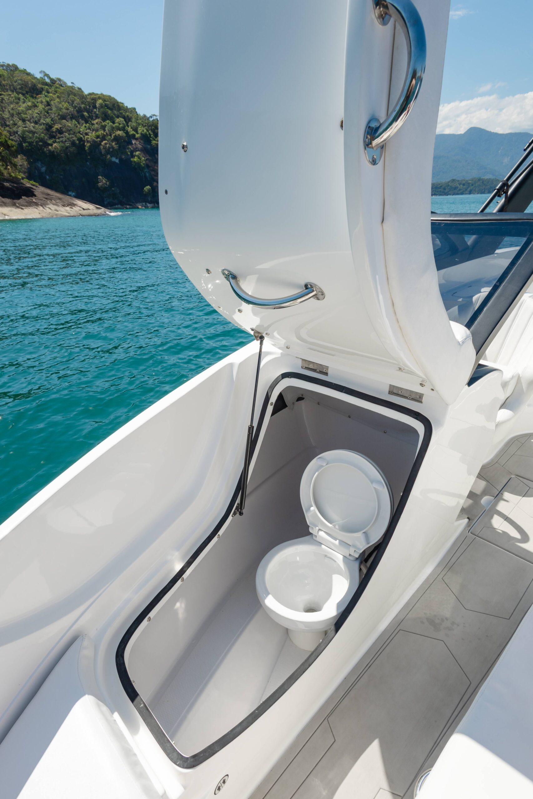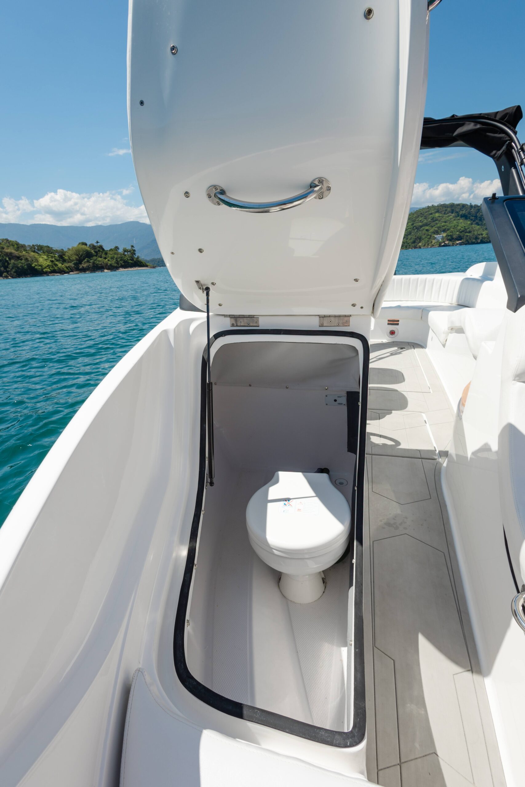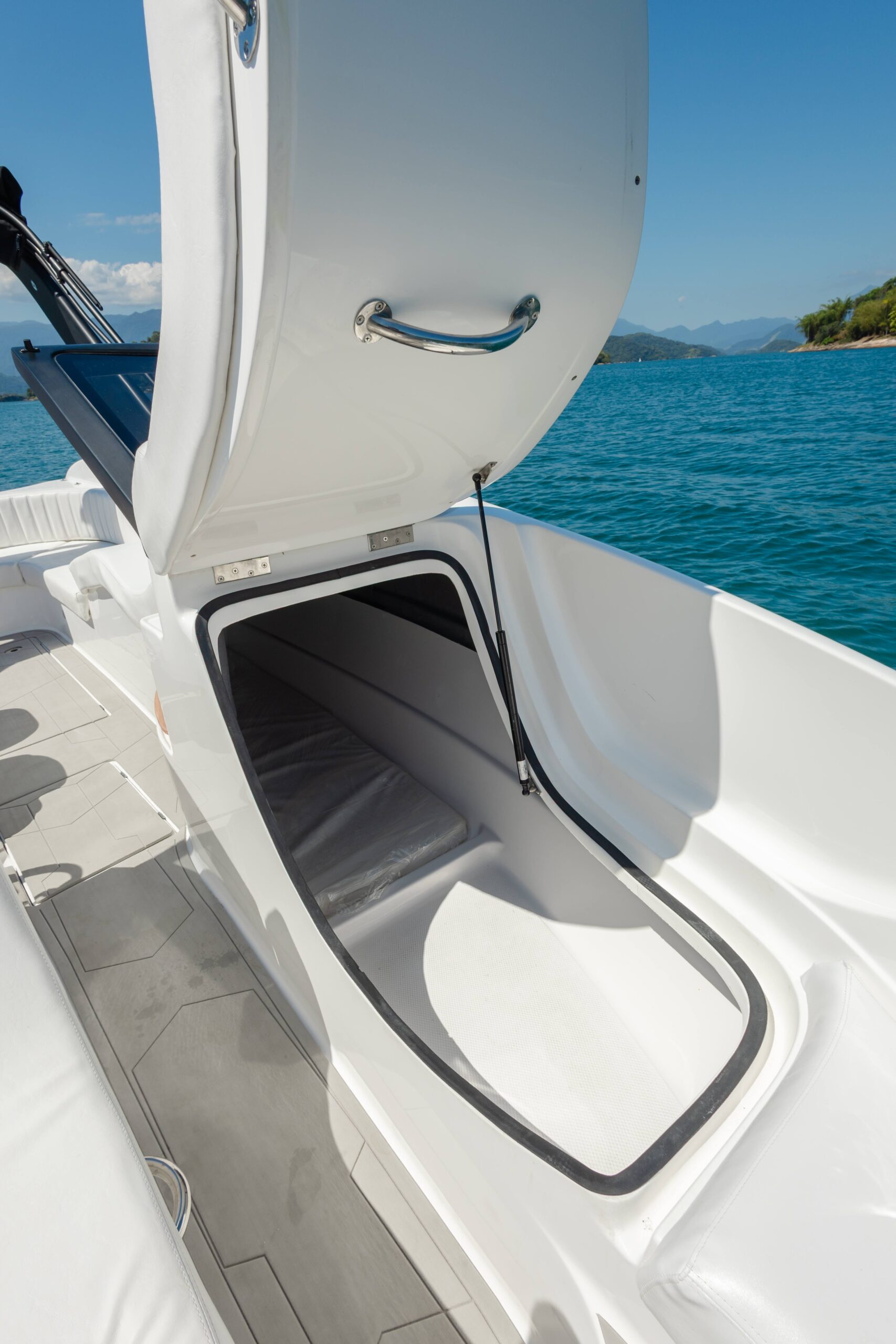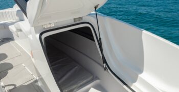 - Compartimentos sob os Divãs da proa reversíveis em banheiro e/ou cabine