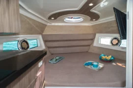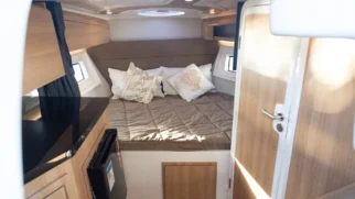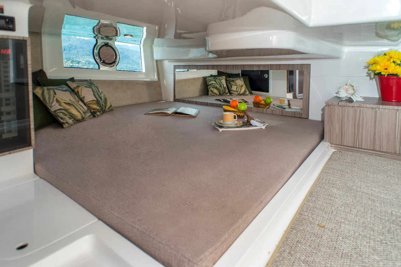 Já equipada com casco de 4ª Geração, o V mais profundo e um grande ângulo de ataque, proporcionam uma navegação muito mais confortável ao cortar as ondas.