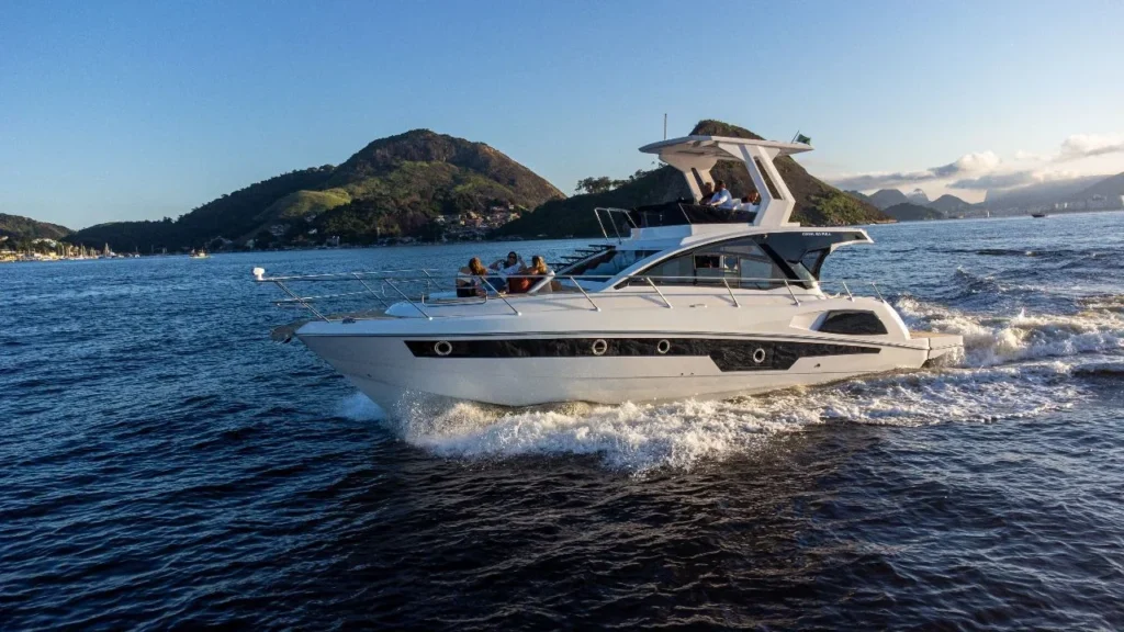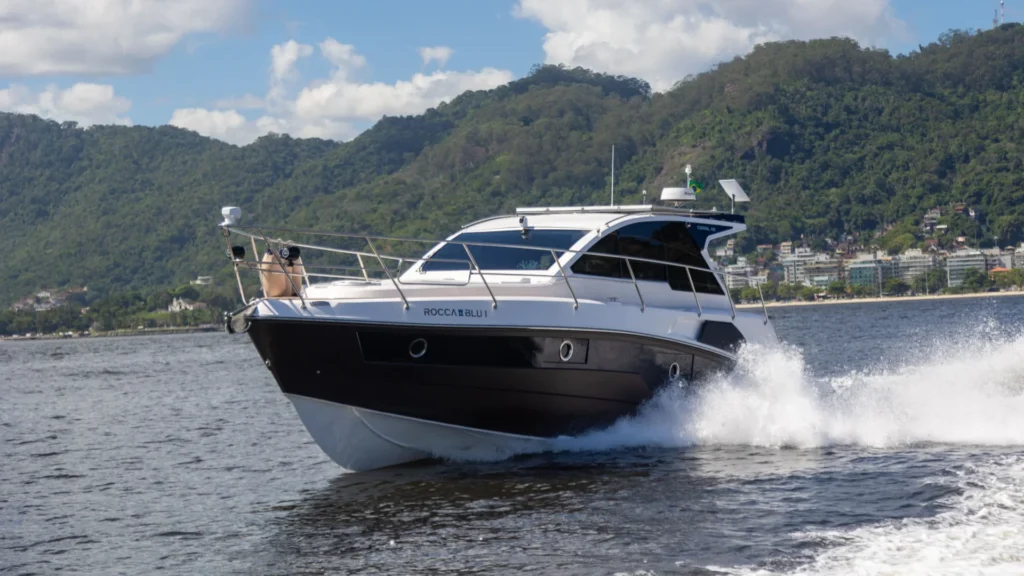 Já nos modelos de 33 e 36 pés, é possível substituir a targa convencional pelo Hard Top (HT), oferecendo mais conforto, modernidade e proteção ao ambiente de navegação.